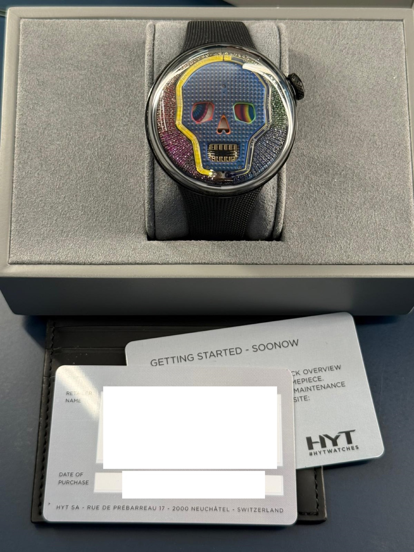 The HYT Soonow Instant Rainbow (Ref. H02513) is an avant-garde, limited-edition mechanical watch from the independent Swiss brand HYT, known for using fluid mechanics to indicate time — an innovation that blends horology and micro-engineering. This edition is highly exclusive, with only 8 pieces produced worldwide.