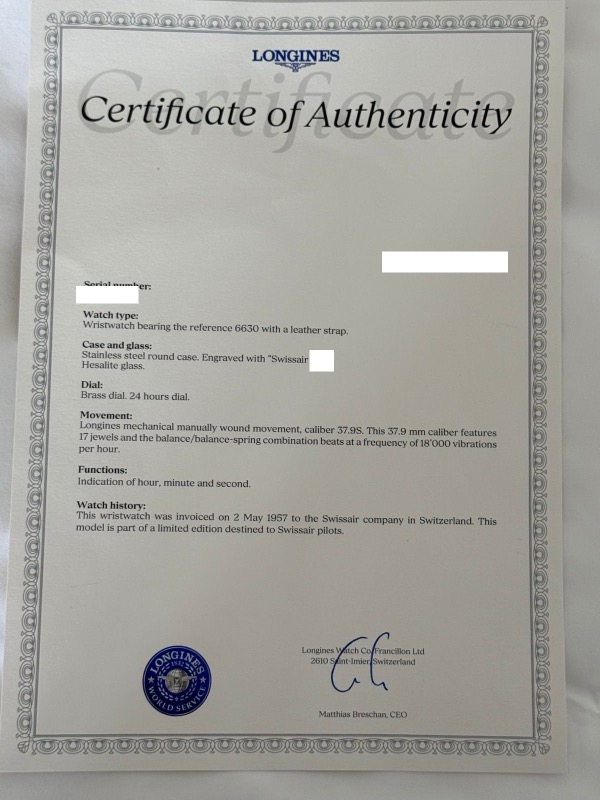 Il Longines Swissair Ref. 6630 è un orologio da aviatore eccezionalmente raro e di grande importanza storica, realizzato negli anni '50 esclusivamente per i piloti della Swissair.
