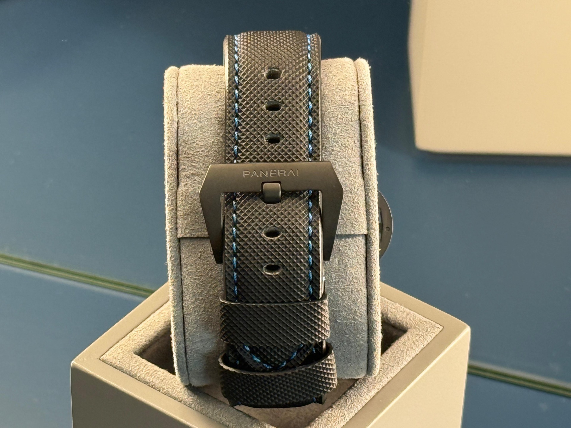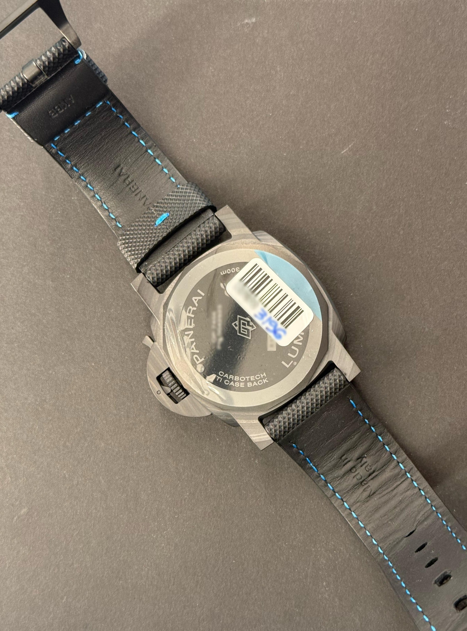 Queste modifiche, insieme alla cassa in fibra di carbonio con venature, conferiscono al Luminor Carbotech un aspetto sobrio e monocromatico. Il Carbotech, un composito sviluppato da Panerai, è ottenuto dalla sovrapposizione di strati di fibra di carbonio sotto pressione. Altamente resistente agli urti e alla corrosione, la sua texture irregolare conferisce un carattere unico a ogni orologio.