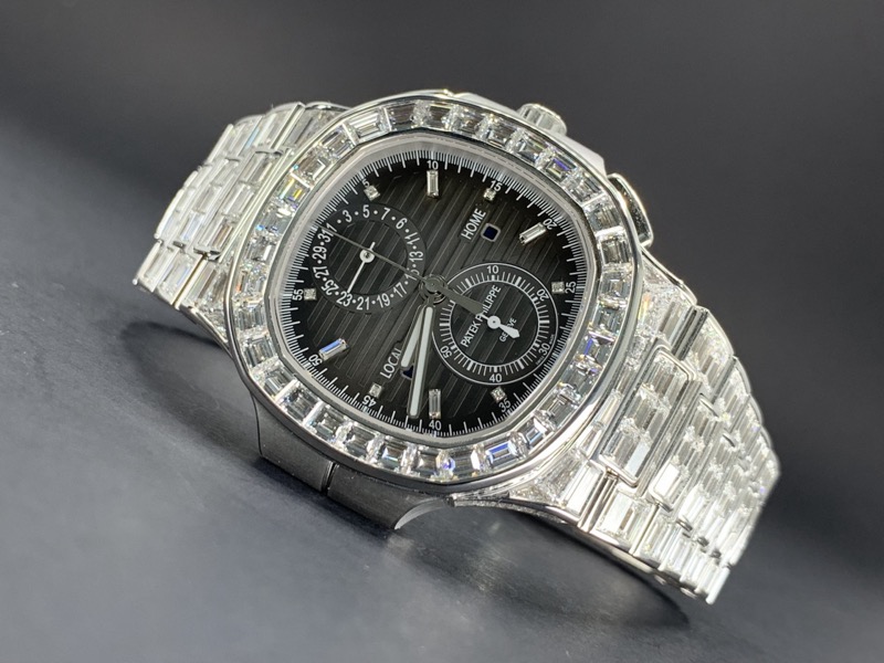 Nautilus Full Baguette Diamonds Travel Time Chronograph White Gold - 5990/1400G