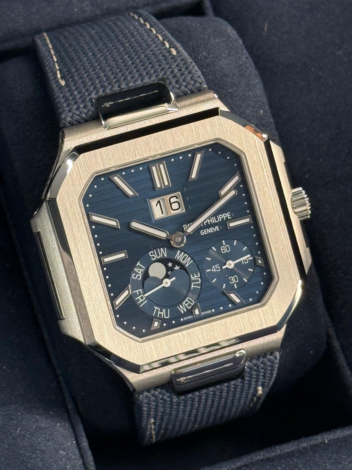 The Patek Philippe Cubitus Ref. 5822P-001 is a distinguished timepiece that marks a significant addition to Patek Philippe's collection, being the brand's first new line in 25 years.
