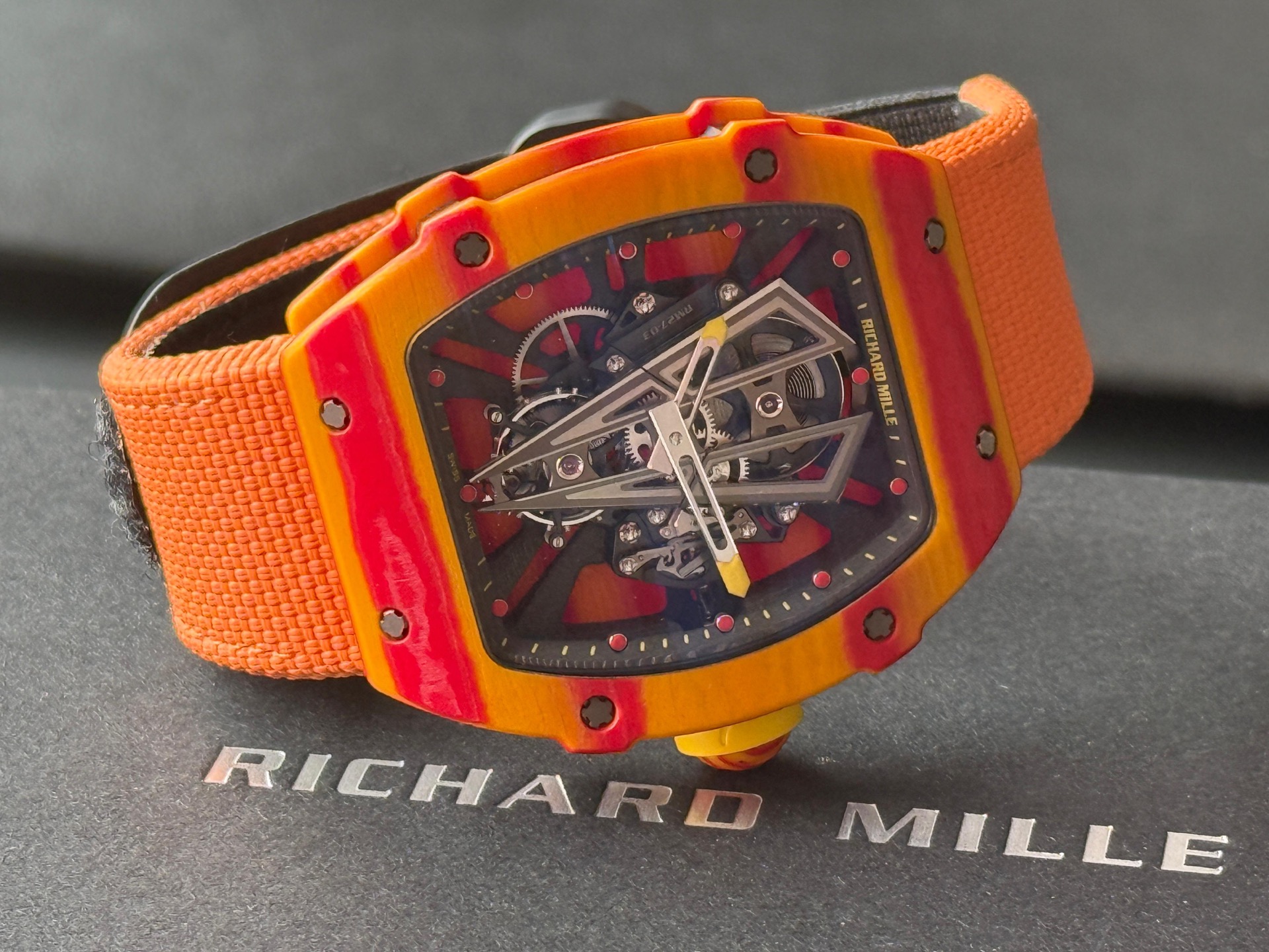 The Richard Mille RM 27-03 CA FQ is a remarkable timepiece developed in collaboration with tennis legend Rafael Nadal. Unveiled in 2017, this limited-edition watch is renowned for its vibrant design, technical innovation, and exceptional durability.