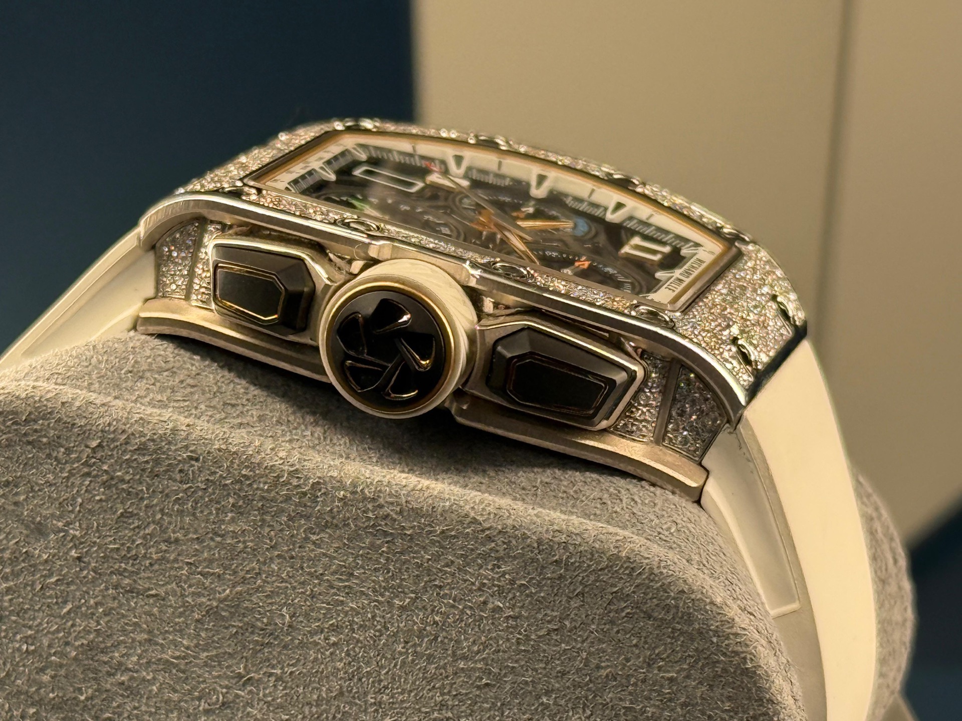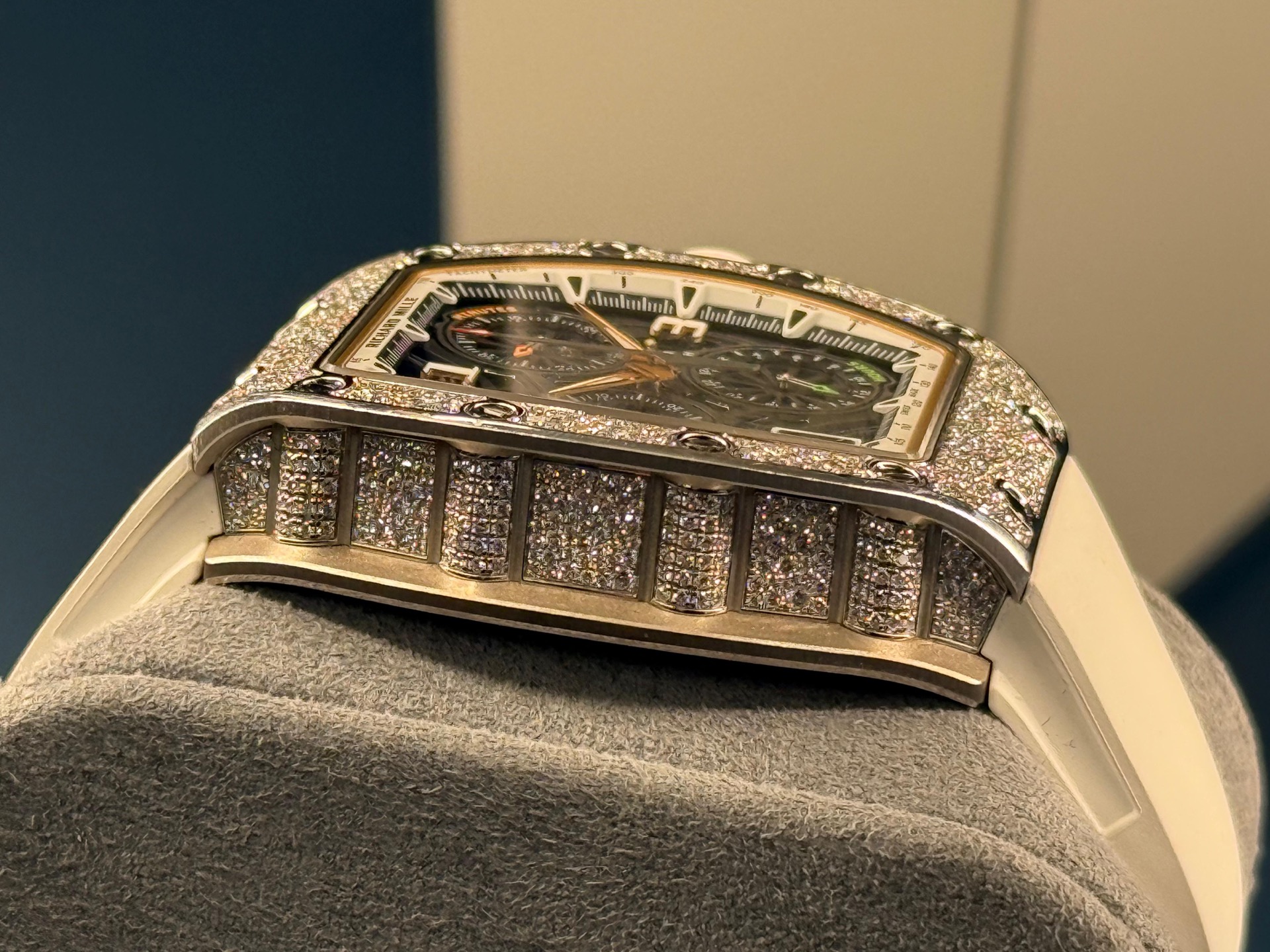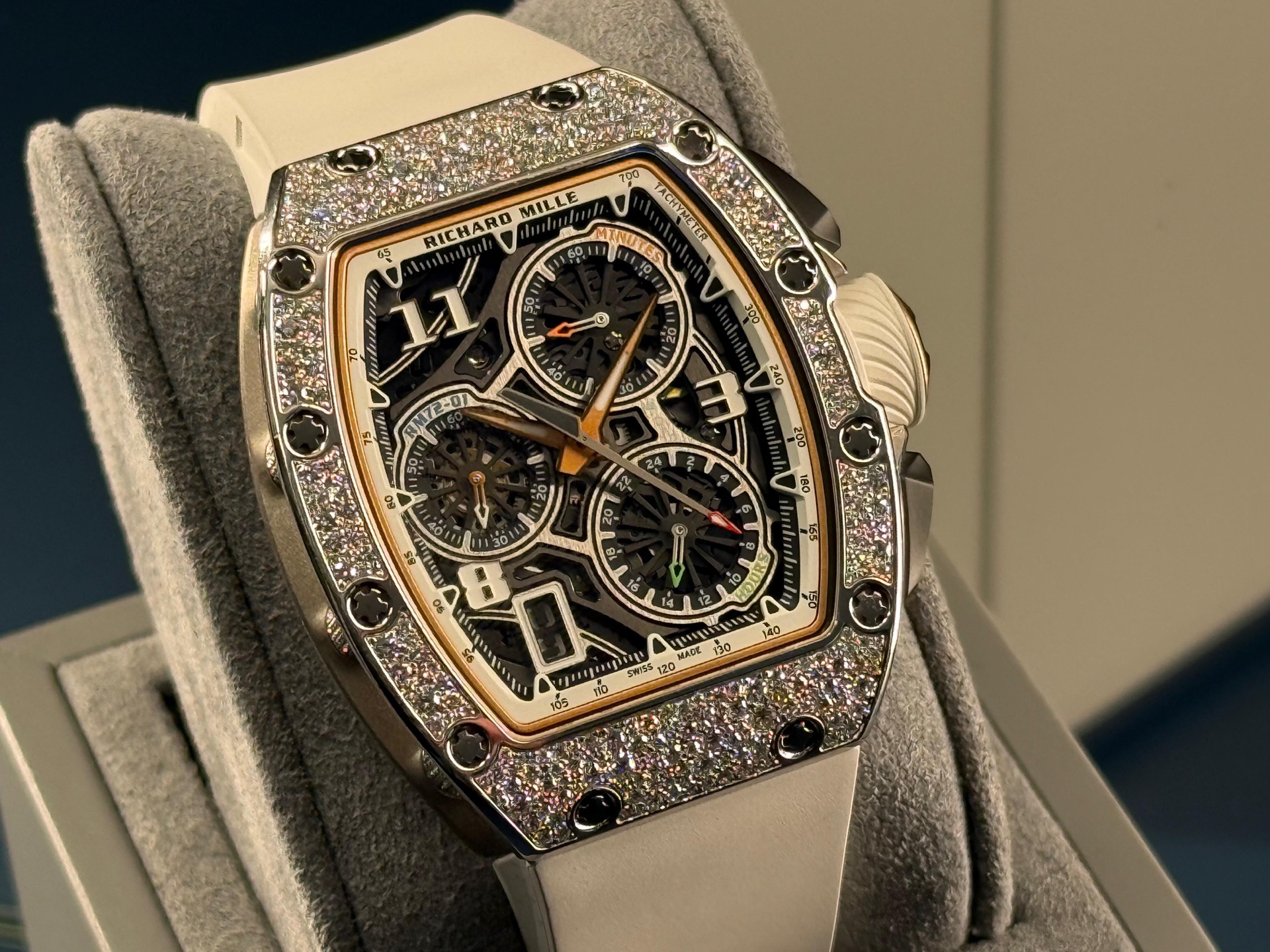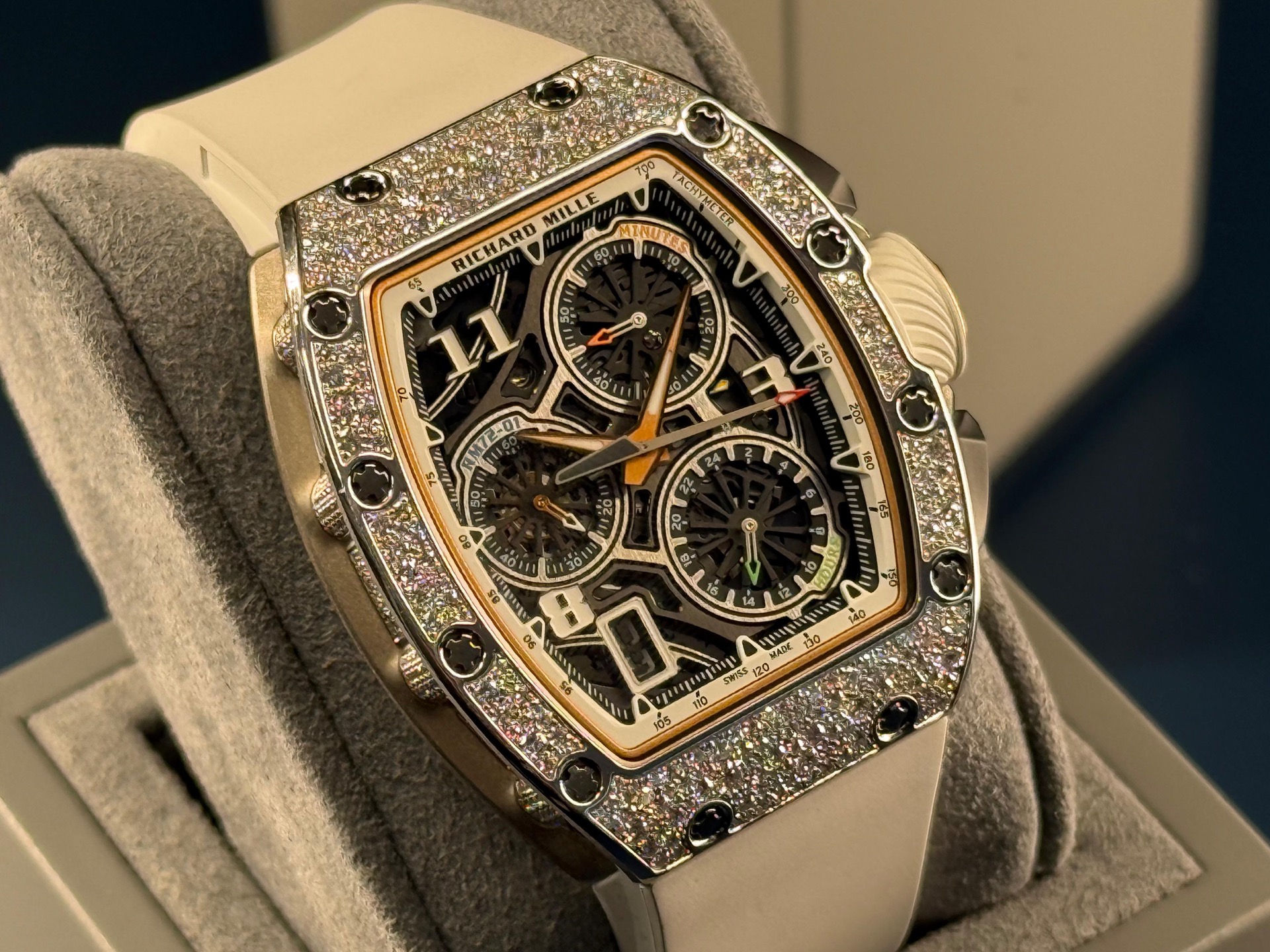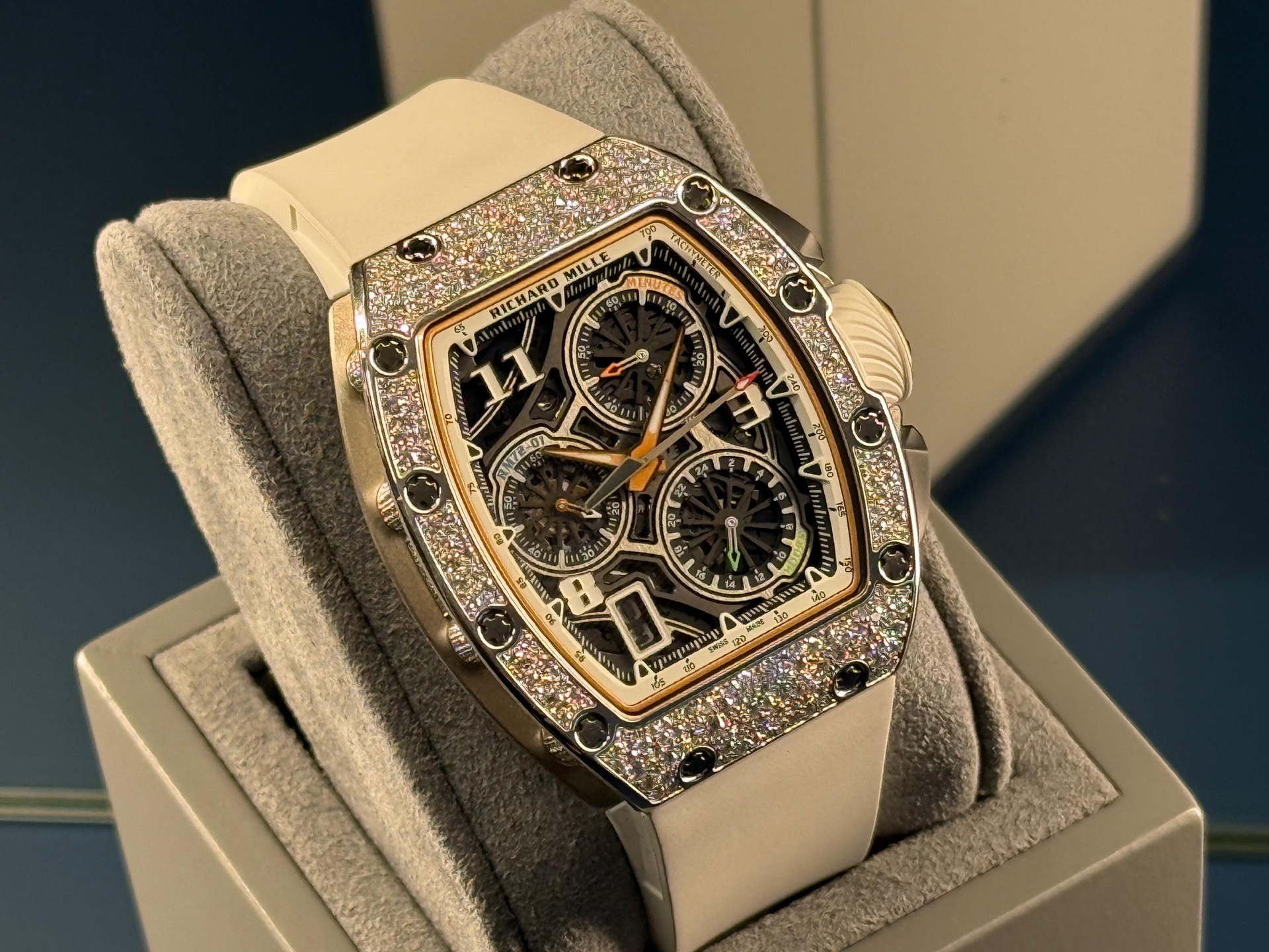 The Richard Mille RM 72-01 is a high-end automatic flyback chronograph from Richard Mille, positioned as a luxury lifestyle and technical chronograph that blends cutting-edge watchmaking with elegant design. It is notable for housing Richard Mille’s first fully in-house automatic flyback chronograph movement and in stunning precious metal with diamond decoration.