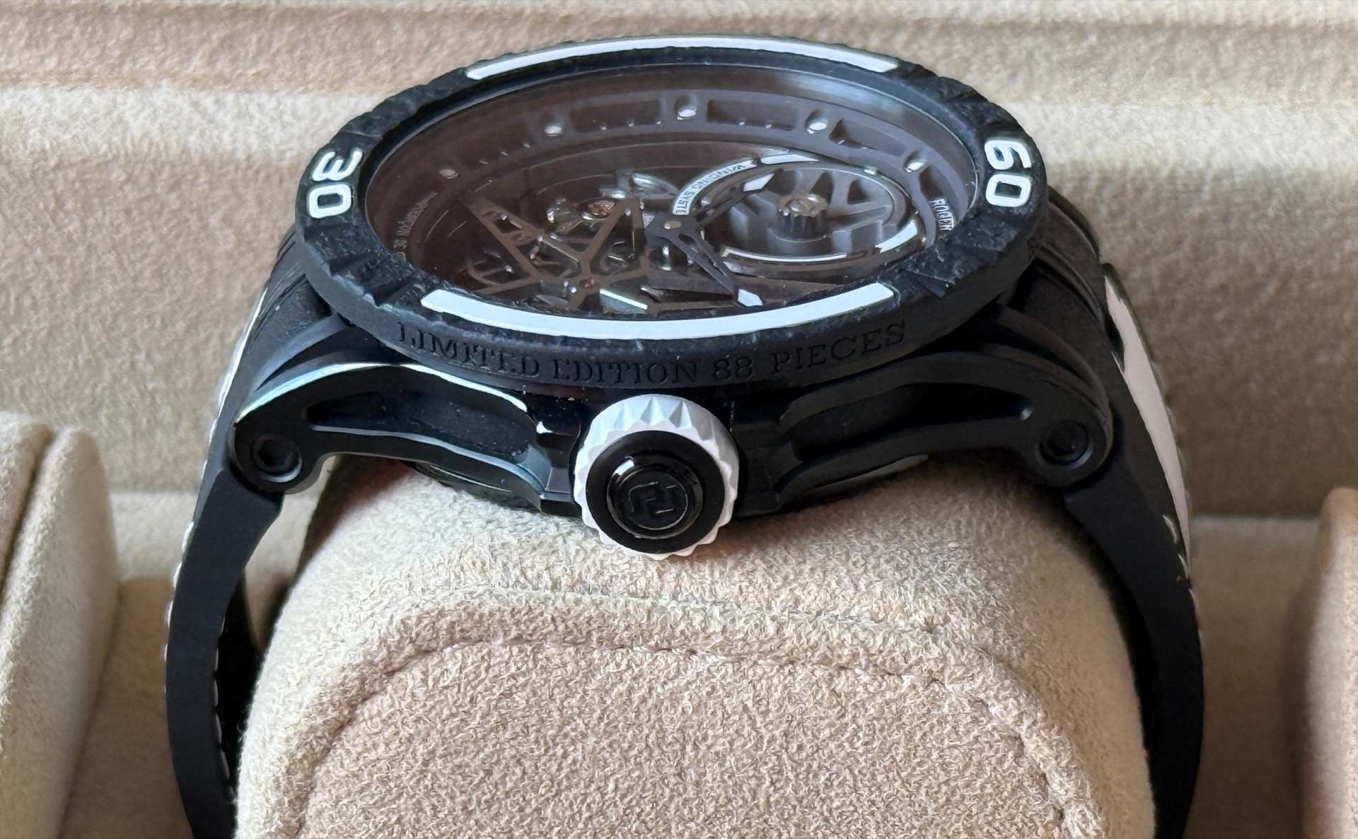 The Roger Dubuis Excalibur Spider Pirelli, reference RDDBEX0826, is a distinctive timepiece born from the collaboration between Roger Dubuis and Pirelli, the renowned tire manufacturer. This partnership integrates elements of motorsport into haute horology, resulting in a watch that embodies both performance and luxury.