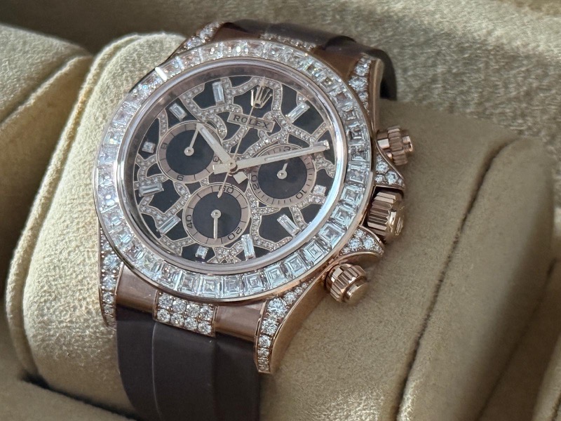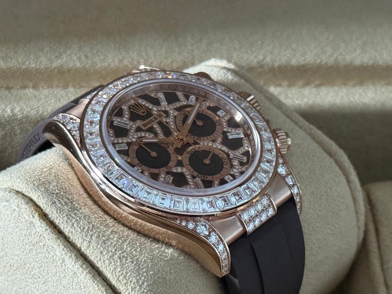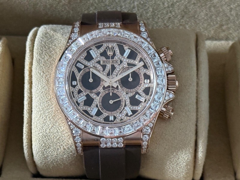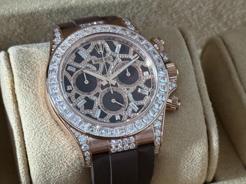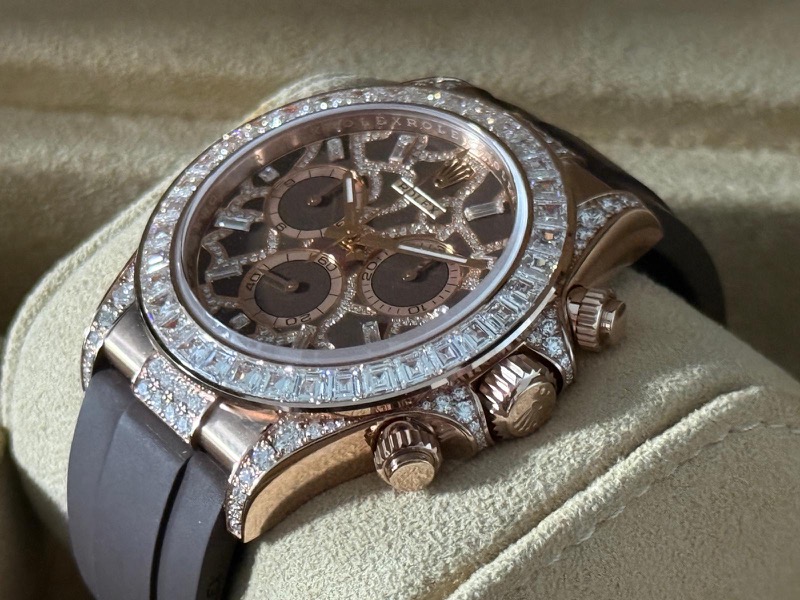 Il Rolex Daytona “Giraffe” Ref. 126555TBR è un'edizione ultra-esclusiva e di alta gioielleria dell'iconico cronografo Cosmograph Daytona, realizzata con materiali pregiati e un design audace diverso da quasi ogni altro modello Rolex di produzione.