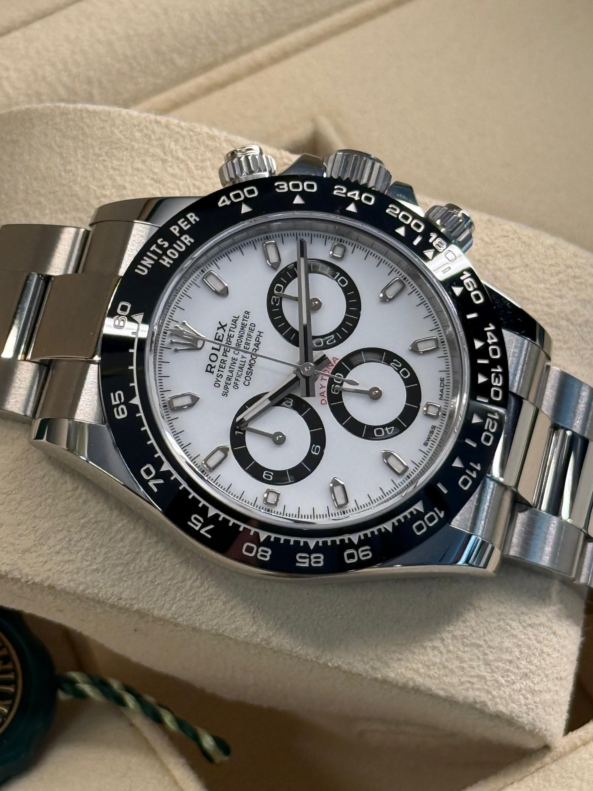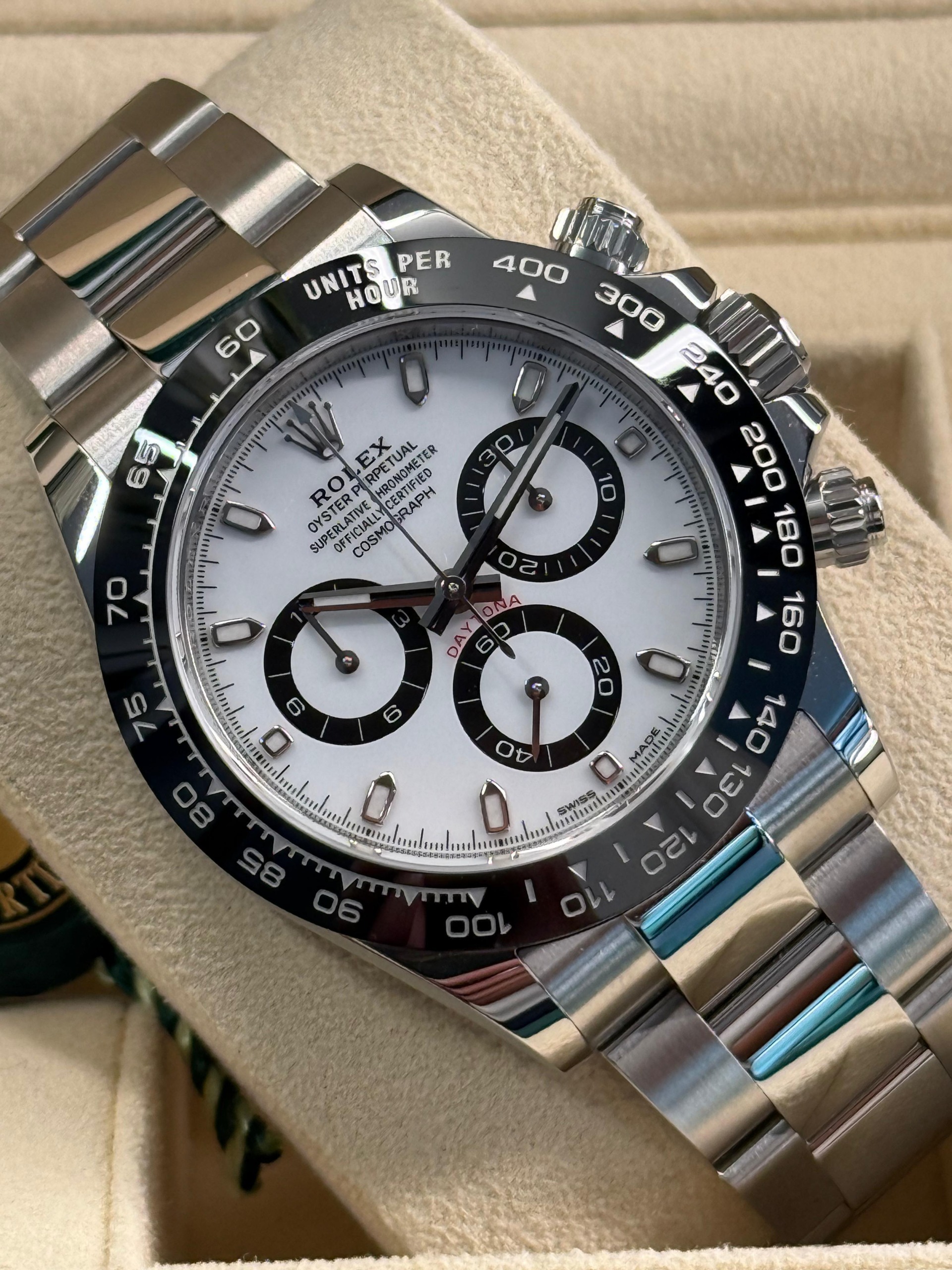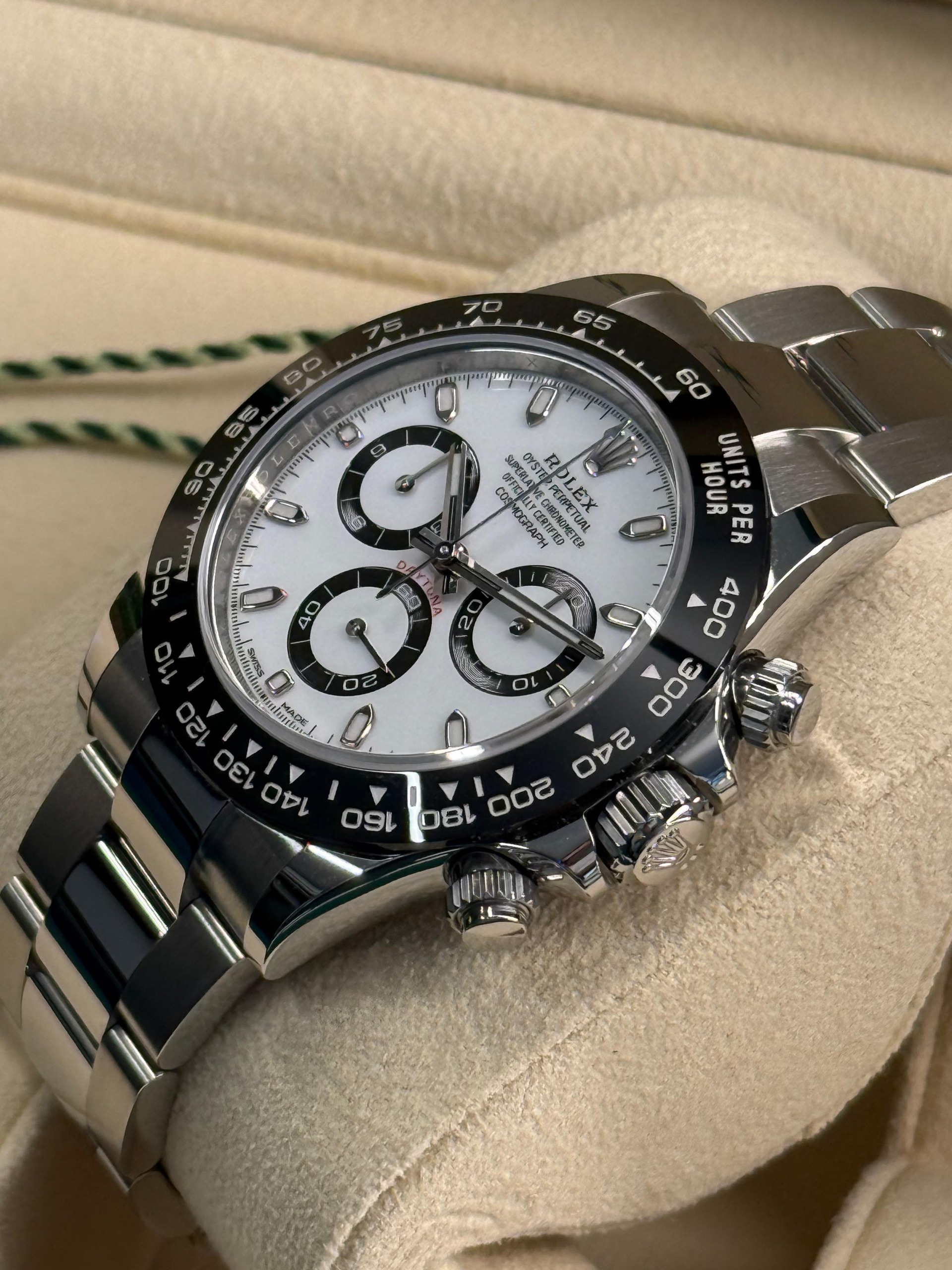 Rolex Daytona 116500LN quadrante bianco "Panda", cassa 40 mm e bracciale in acciaio
