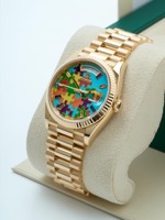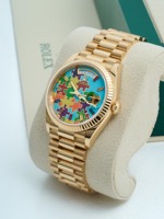 The Rolex Day-Date 36 Jigsaw Puzzle Dial Yellow Gold – Reference 128238 is one of the most playful and vibrant expressions of the Day-Date collection, blending Rolex’s hallmark prestige with a bold, unconventional dial design. It is a striking departure from Rolex’s typically conservative design language, designed to celebrate joy, positivity, and individuality, all wrapped in luxurious yellow gold.