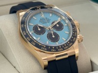 Rolex Cosmograph Daytona 126518LN in 18 kt yellow gold with its standout turquoise-blue (Tiffany‑style) lacquer dial, launched in 2025. It combines iconic Daytona chronograph performance with a fresh, vibrant twist, making it perfect for collectors seeking a standout piece that blends modern edge with timeless prestige.